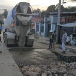 Sejumlah truk terlihat lalu lalang mengangkut material. Panas. Sangat panas. Penuh debu.