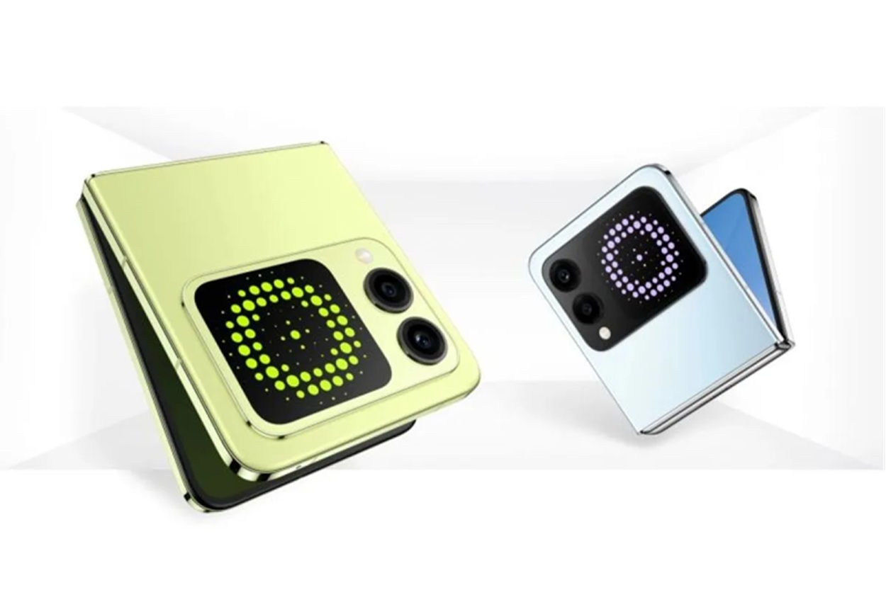 Hadir layar eksternal berbentuk persegi 2,14 inci dengan resolusi 480×480, layar ini bisa dipasangi tema-tema menyenangkan seperti hewan peliharaan lucu, wallpaper DIY, dan tampilan panggilan interaktif.