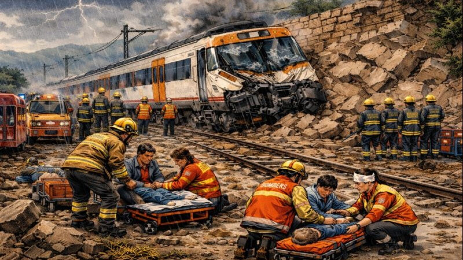Otoritas setempat mengonfirmasi bahwa kereta tersebut menabrak dinding penahan yang runtuh ke atas rel, menyebabkan rangkaian keluar jalur dan mengakibatkan korban jiwa serta puluhan korban luka.